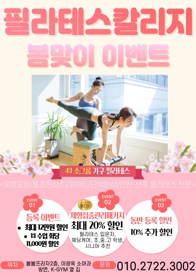 안녕하세요 필라테스 칼리지 안중점입니다.