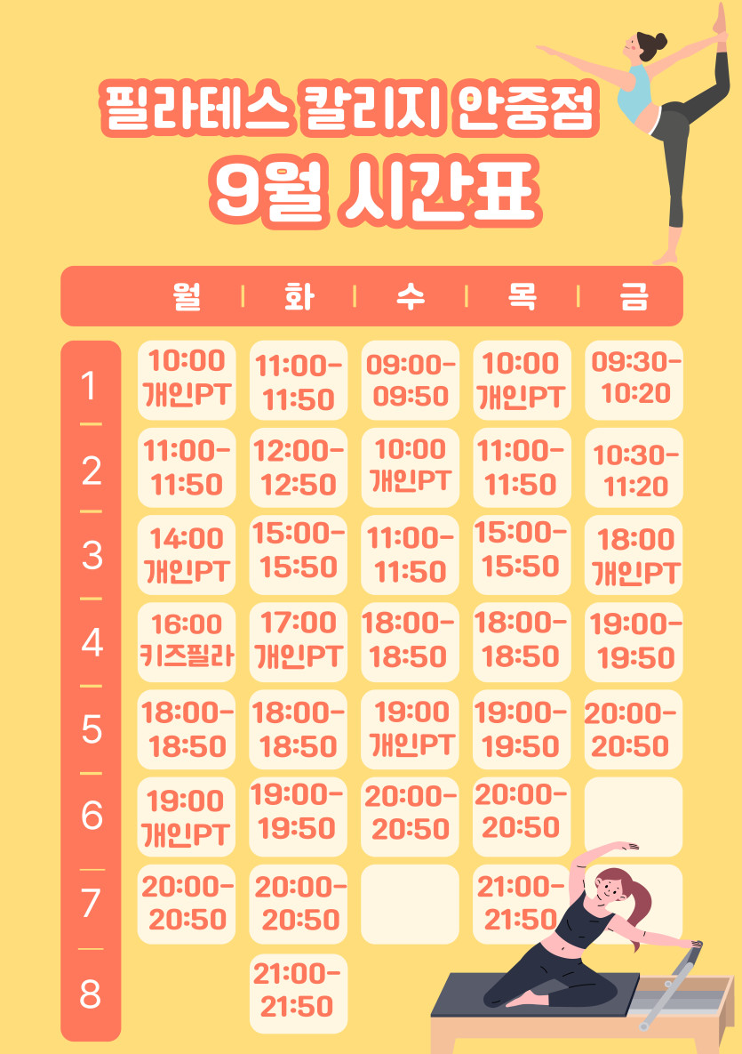 9월 시간표 페이지 정보 작성자 관리자 작성일 25-09-04 14:58 조회 24 댓글 0 본문 안녕하세요 필라테스 칼리지 안중점입니다. 9월 시간표 업데이트하였으니 확인해 주시고 문의사항 있으시면 언제든지 연락 주세요^^ 이전글 10월 강의계획표 다음글 8월 강의계획표 댓글목록 0 등록된 댓글이 없습니다.