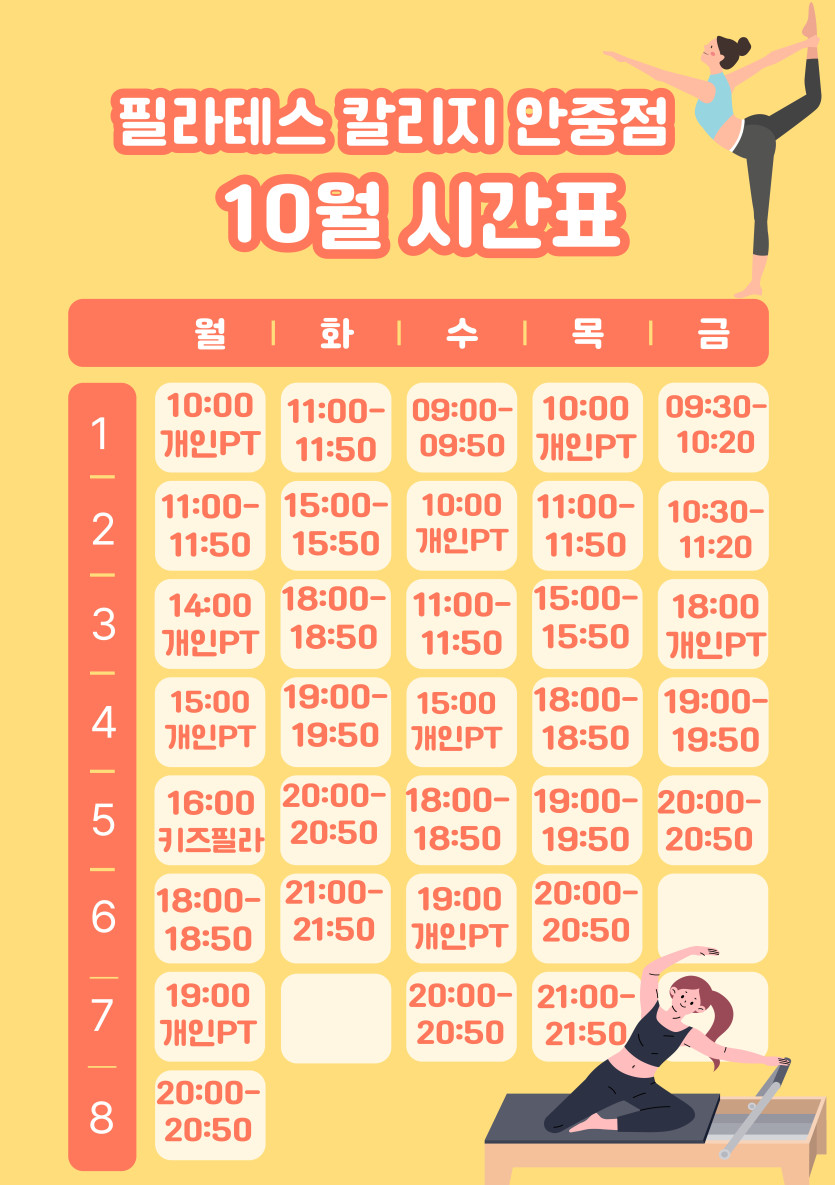 10월 시간표 업로드 되었습니다^^